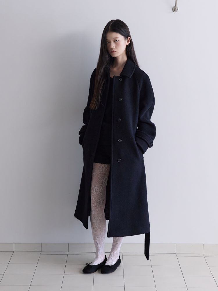원버튼 포인트의 이중지 울 원단을 사용한 맥코트입니다. 나그랑 소매 패턴을 적용하여 어깨선이 자연스럽게 떨어지며 허리라인을 살짝 넣은 후 밑단은 세미 A라인으로 슬림하면서도 클래식한 실루엣으로 제작하였습니다. 둥근 쉐입의 천연 소재 뿔 단추를 사용하여 사랑스러운 포인트를 살렸으며 두꺼운 프리미엄 울 원단으로 보온성 또한 뛰어나며 고시감 있는 터치감으로 착용 시 전체적인 핏을 잘 살려주는 코트입니다.