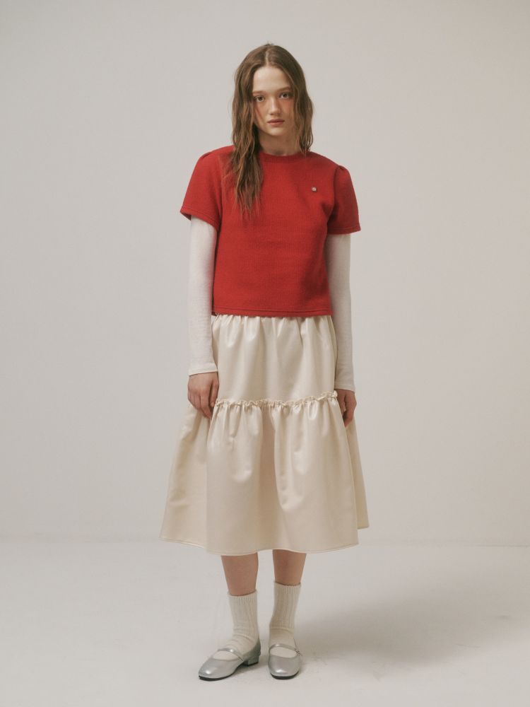 LOVELY PEARL SHIRRING SKIRT_CREAM