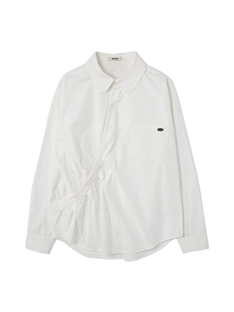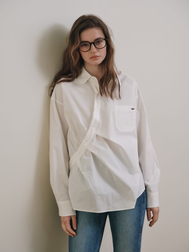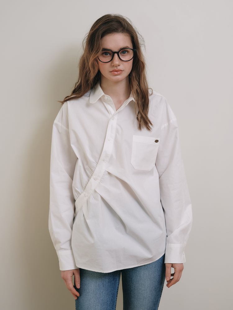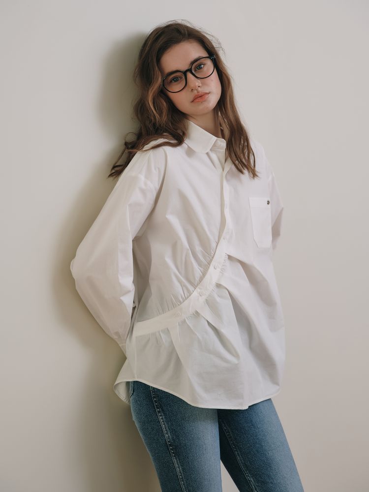 (2nd Reorder) DIAGONAL SHIRRING SHIRT_WHITE