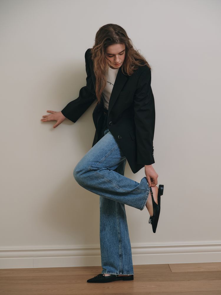 - 허리를 조일 수 있도록 디테일을 추가하여 자켓 허리 부분을 잡아주거나, 앞 단추를 열고 허리 조임 라인을 리본으로 묶어 재밌고 세련되게 스타일링 하실 수 있습니다.