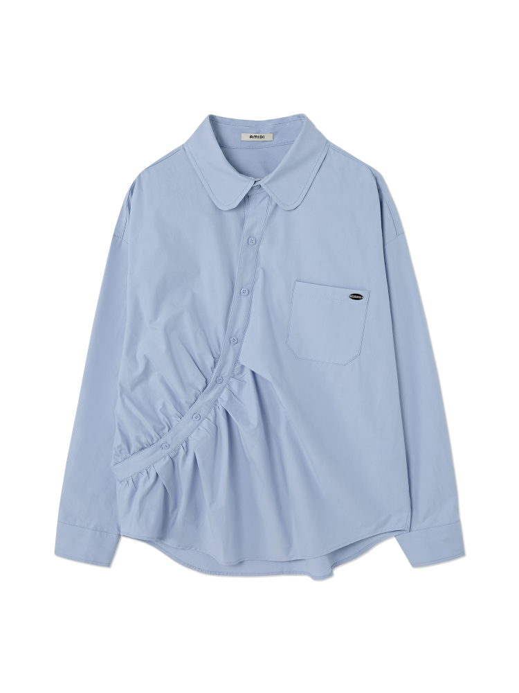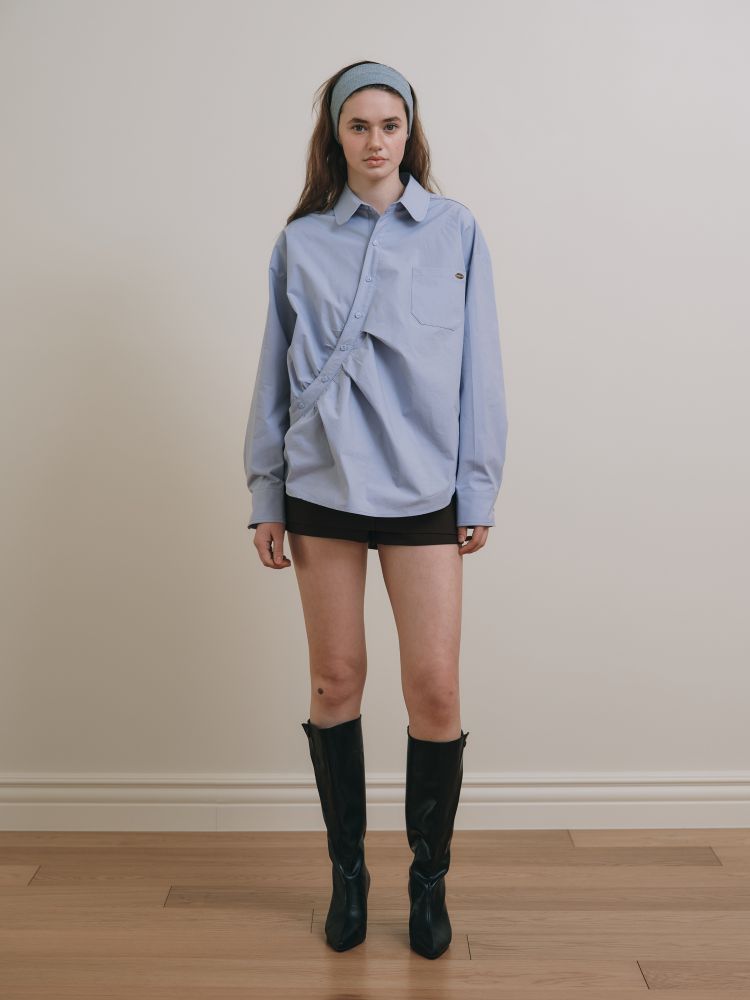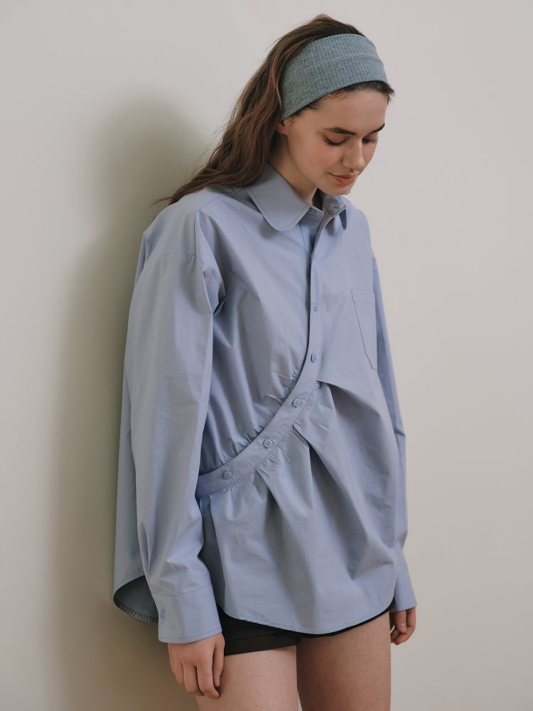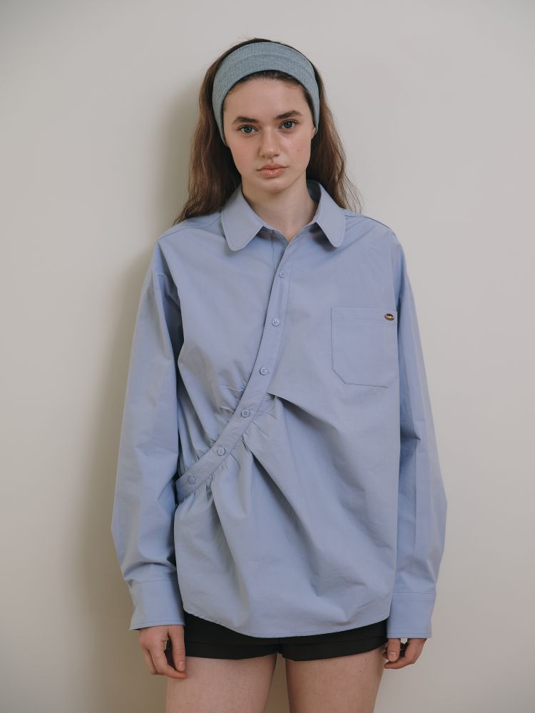 (2nd Reorder) DIAGONAL SHIRRING SHIRT_BLUE