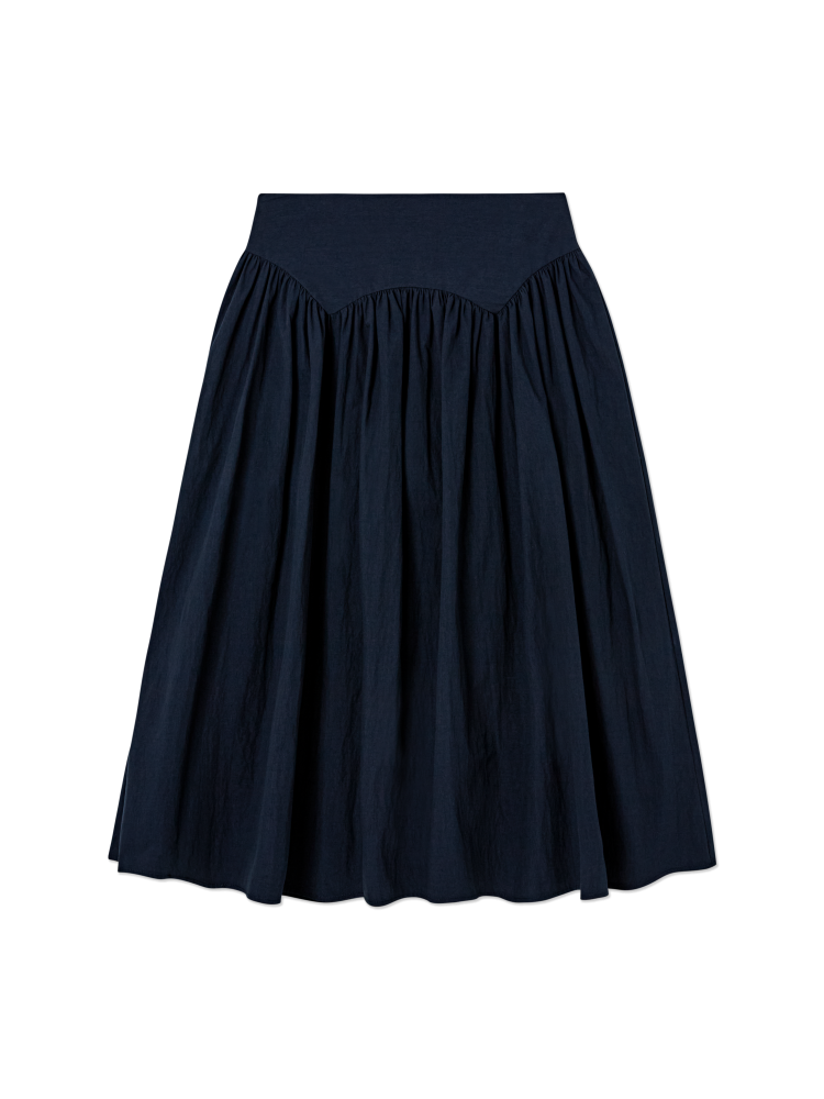 (2nd Reorder) DIAGONAL SHIRRING SKIRT_NAVY