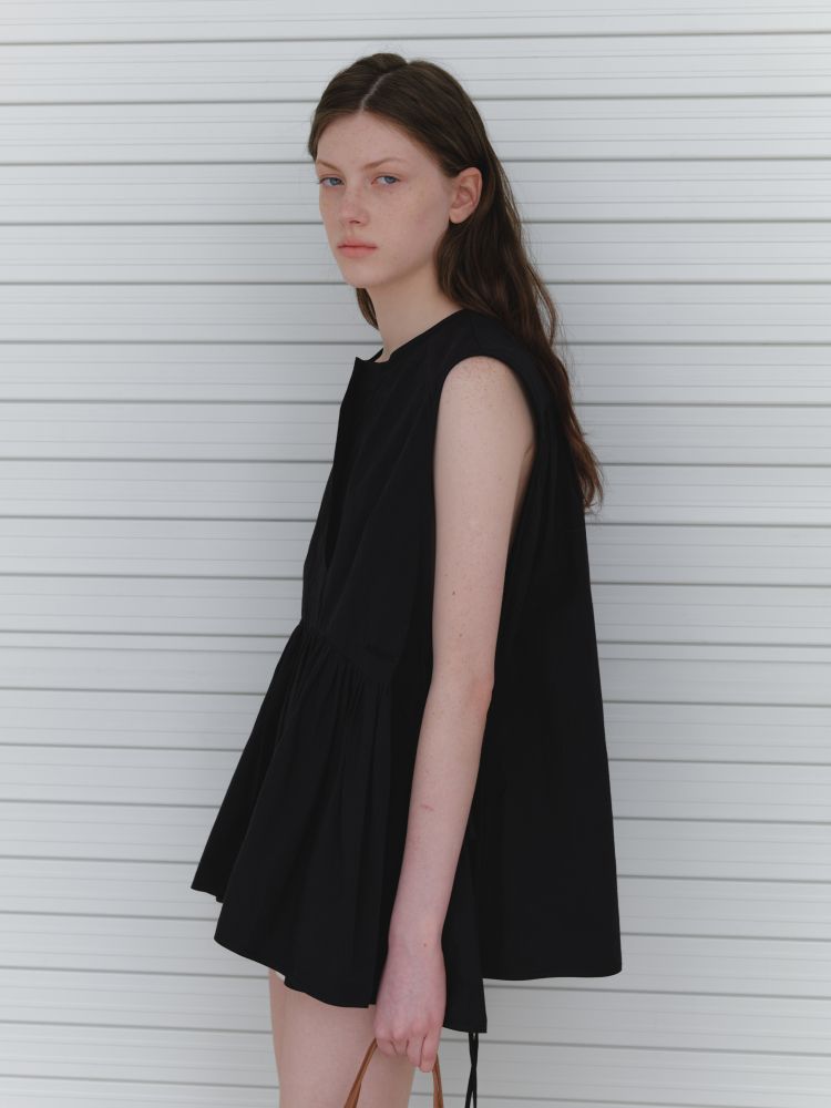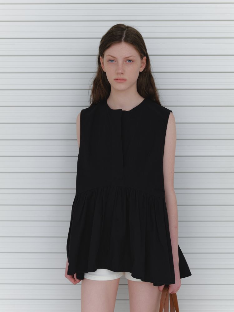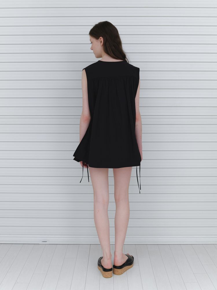 (2nd Reorder) RIBBON POINT INCISION SLEEVELESS BLOUSE_BLACK