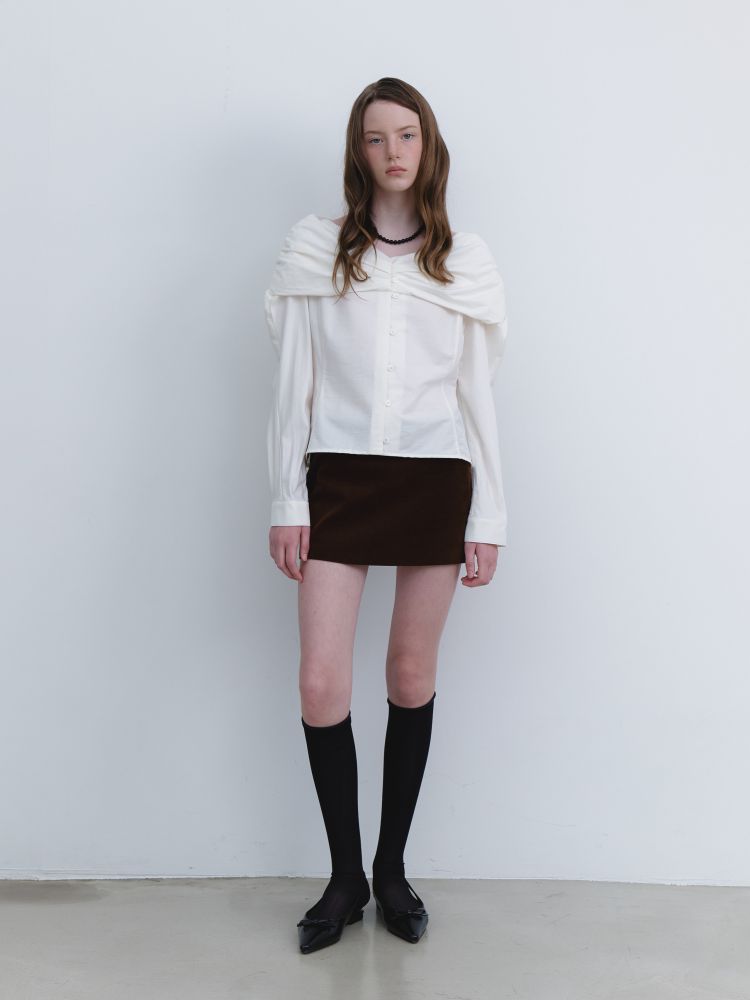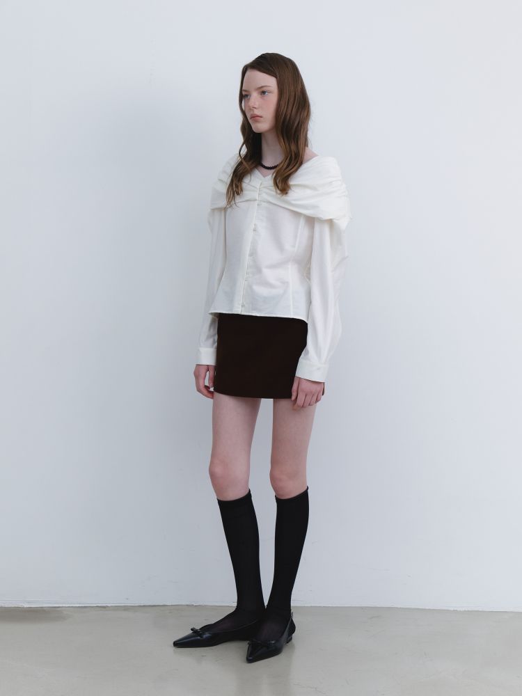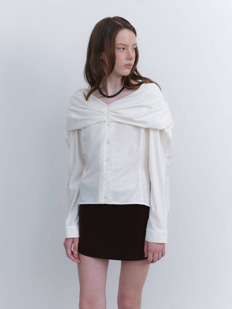OFF-SHOULDER SHIRRING BLOUSE_IVORY