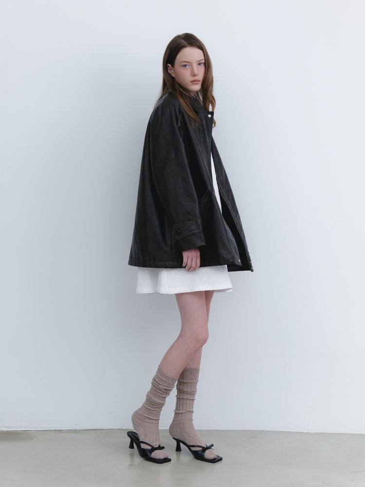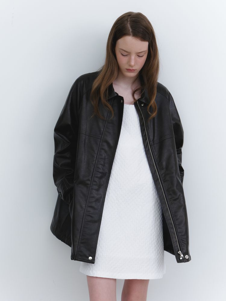 빈티지한 워싱이 매력적인 하프 기장의 오버핏 레더 재킷입니다. 2중 앞여밈으로 퀄리티를 높였으며 주머니를 겉으로 노출하고 주머니 덮개를 부착하였습니다. 가죽 라벨을 따로 제작하여 외부에 마도매로 가죽 라벨을 달아 포인트를 주었습니다. 봄 가을 데일리로 착용하기 좋은 레더 자켓입니다.