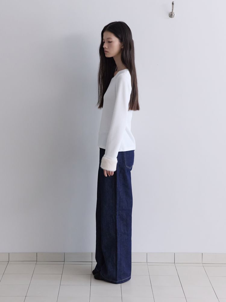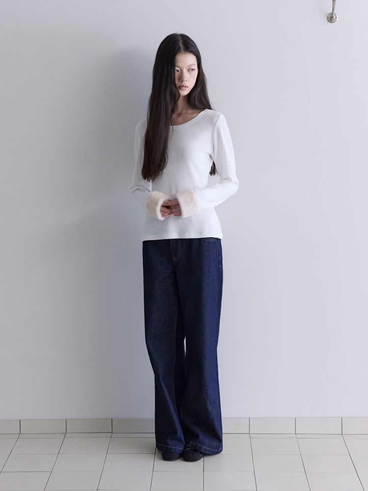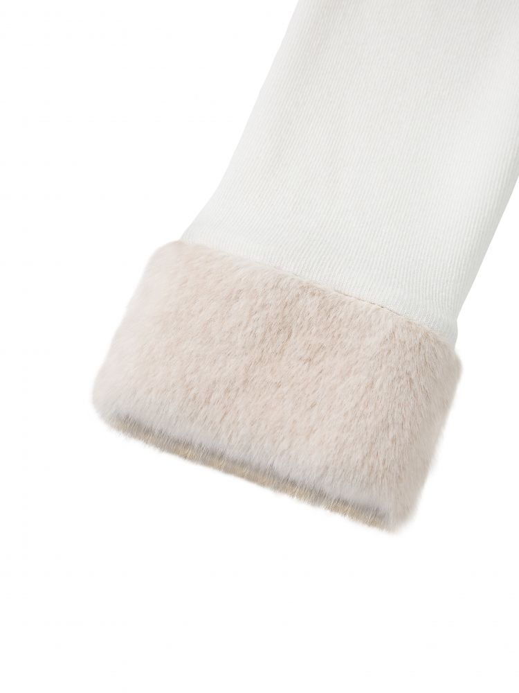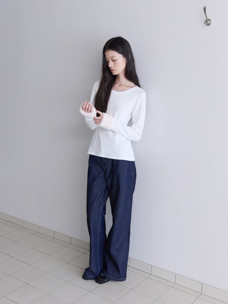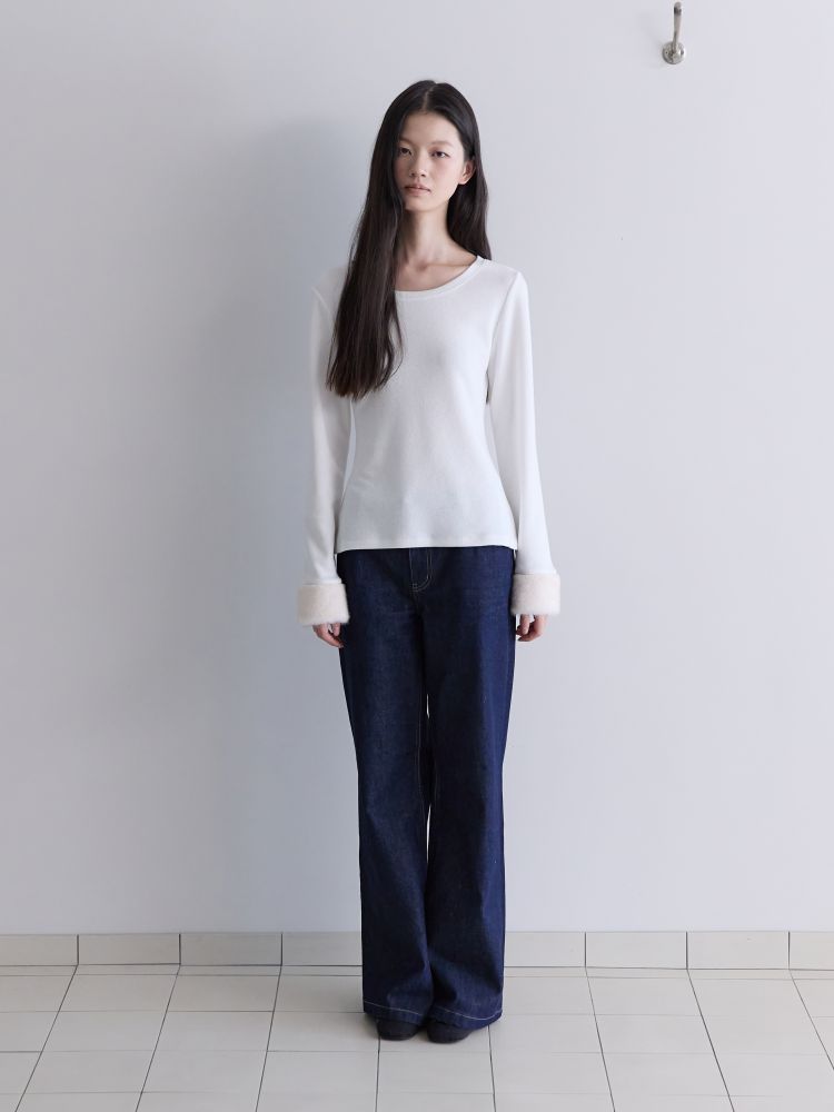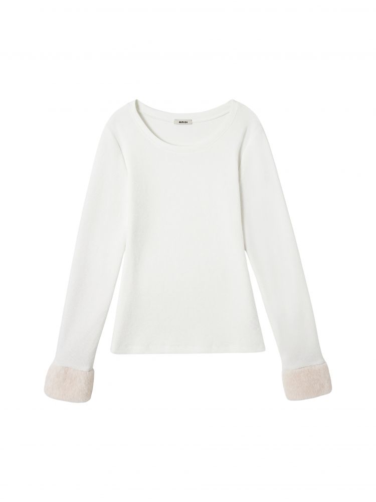 기모 처리가 된 원단으로 보온성이 뛰어난 이너 제품으로 소매에 밍크 퍼가 포인트로 달려 특별하게 연출 가능한 티셔츠입니다. 허리를 잘록하게 보일 수 있도록 슬림하게 제작하였으며 바디와 퍼를 톤온톤으로 구성해 다양한 하의 제품과 스타일링 할 수 있도록 디자인하였습니다.