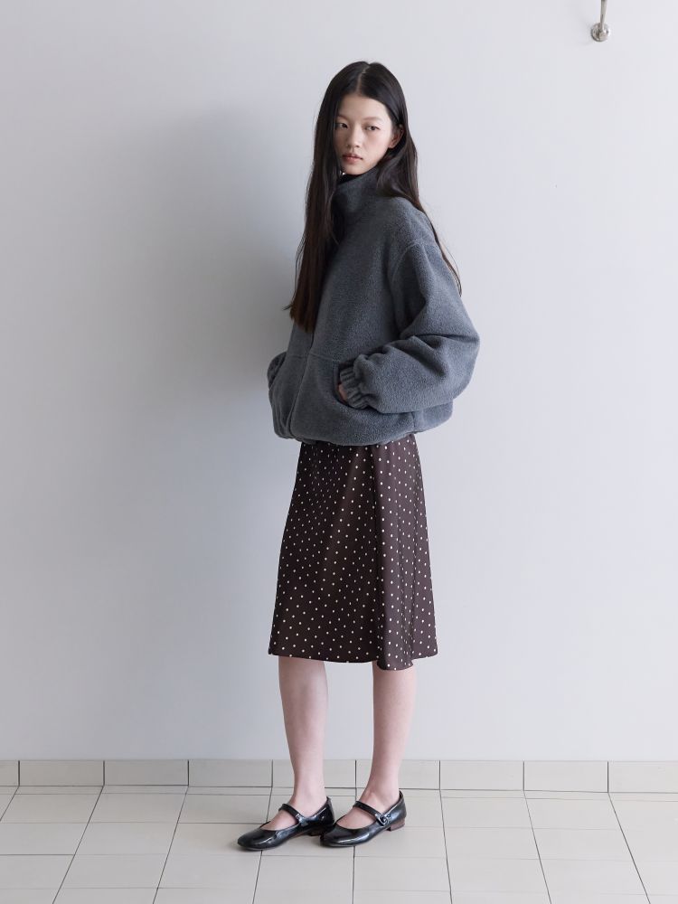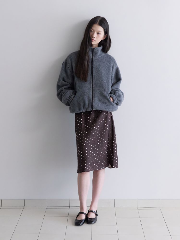 포근한 터치감의 플리스 원단으로 제작된 하프넥 집업 점퍼입니다. 부드럽고 가벼운 소재로 데일리로 착용하기 좋은 아이템으로 어깨에 작은 셔링 디테일을 넣어 아미디만의 사랑스러운 무드를 살렸습니다. 밑단에는 조절 가능한 스트링이 있어 다양한 연출이 가능하며 소매 끝과 밑단 끝에 밴드가 있어 캐주얼하게 스타일링 하기 좋은 제품입니다.
