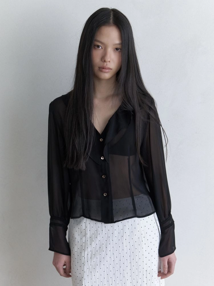 RUFFLE CHIFFON BLOUSE_BLACK