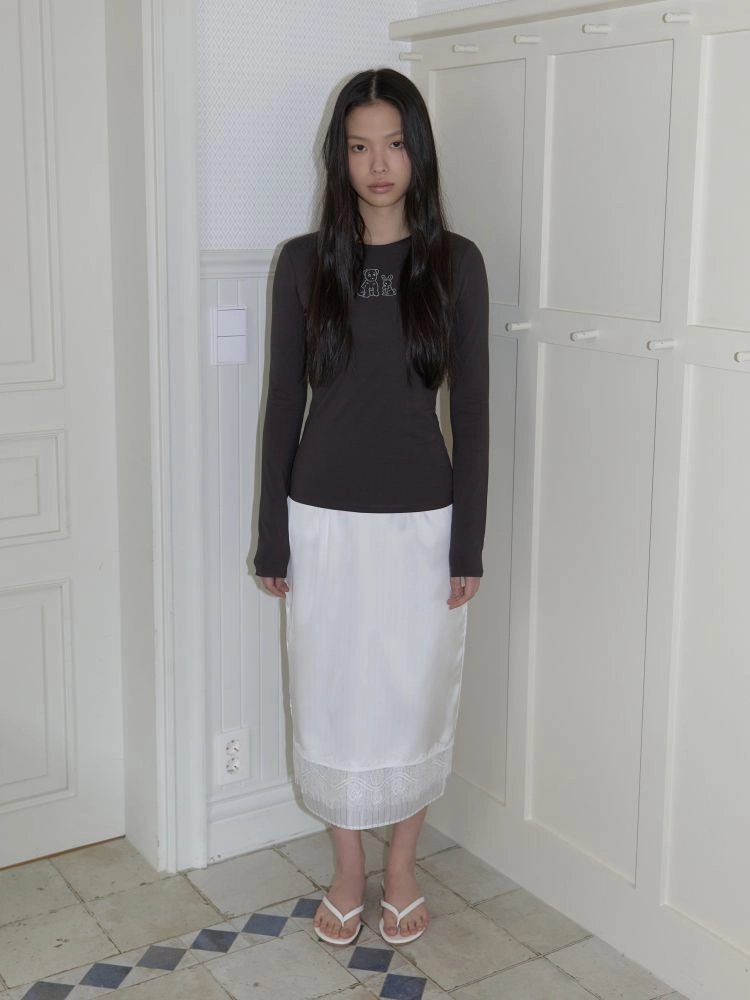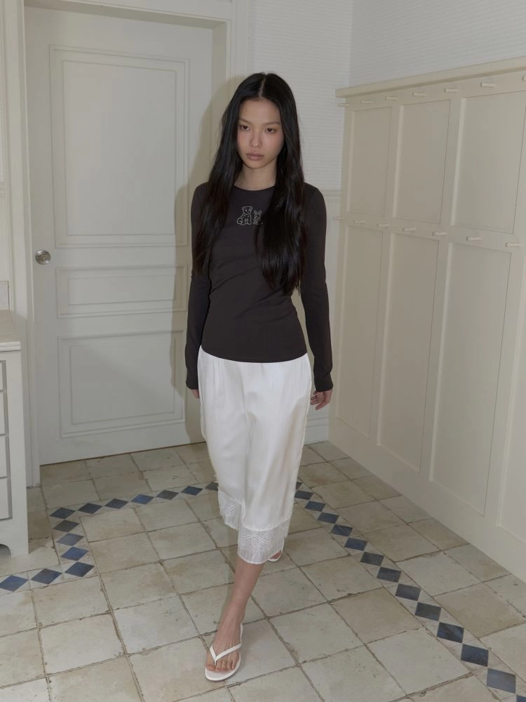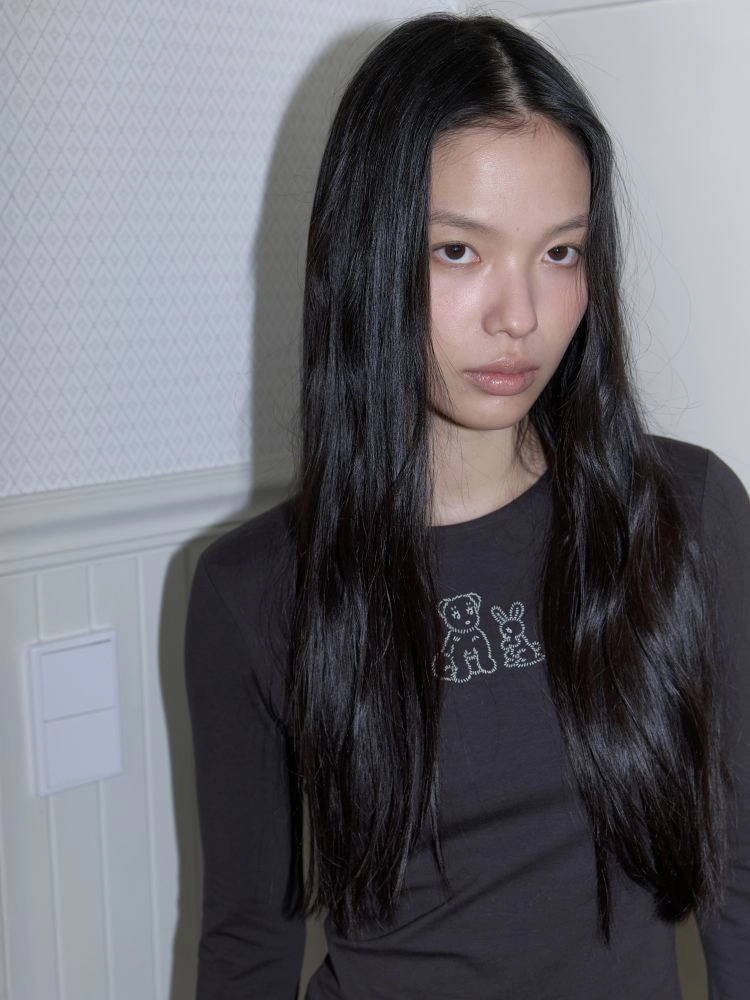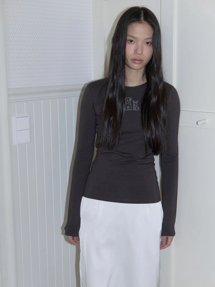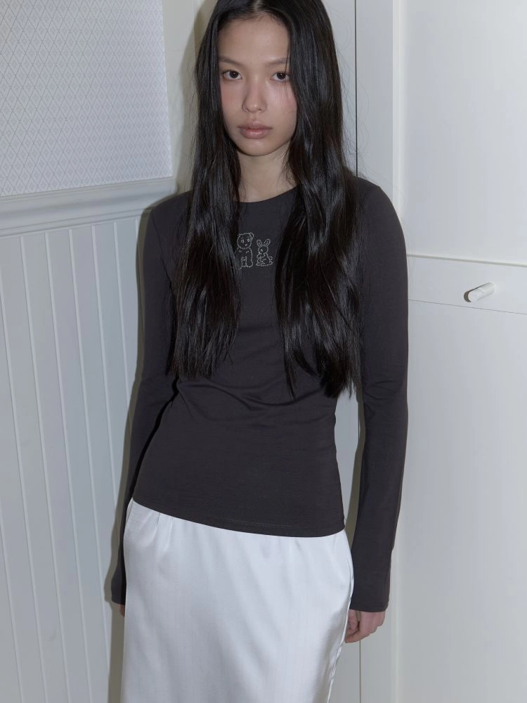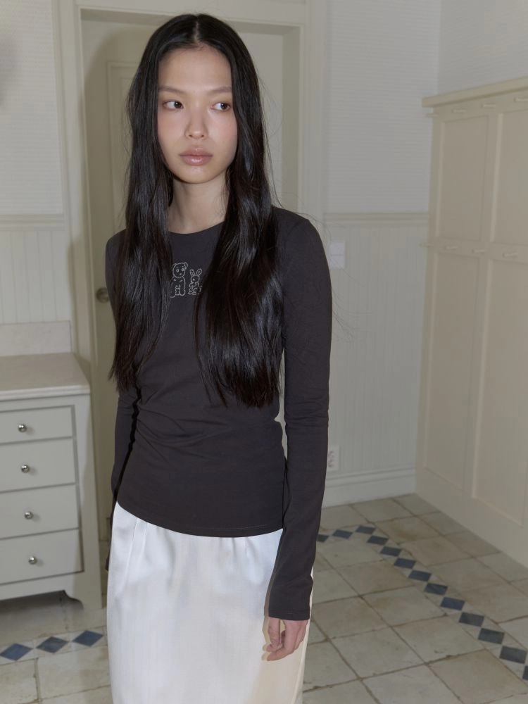 슬림한 핏의 긴 소매가 돋보이는 코튼 티셔츠입니다. 바디 라인을 따라 부드럽게 떨어지는 실루엣으로 단독으로도, 이너로도 활용하기 좋은 아이템입니다. 정면에는 브랜드에서 개발한 그래픽이 더해져 은은한 포인트가 되어줍니다. 귀여운 강아지와 토끼가 함께 담긴 그래픽이 아미디만의 사랑스럽고 위트 있는 분위기를 완성합니다. 부드러운 면 혼방 소재로 제작되어 편안한 착용감을 느낄 수 있으며 데일리하게 활용하기 좋은 티셔츠입니다.